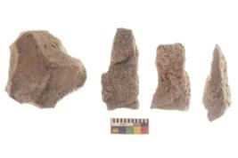 | Description / विवरण | There are n 4 utilized flakes. There are multi directional irregular scar pattern on both dorsal and ventral face of the flakes. two are tapering at one end and two have sharp edges. |