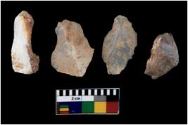 | Description / विवरण | There are n 4 utilized flake cores. There are multi directional irregular scar pattern on them. Two are tapering at one end and two have blunted edges. |