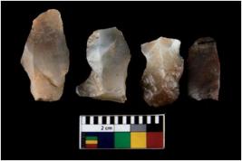 | Description / विवरण | There are n 4 ; worked utilized flakes; there are multidirectional irregular scar pattern on both dorsal and ventral face of the flakes. All are having sharp edges. |