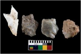| Description / विवरण | There are n 4 ; worked utilized flakes; there are multidirectional irregular scar pattern on both dorsal and ventral face of the flakes. All are having sharp edges. |