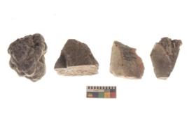 | Description / विवरण | There are n 4 utilized flakes. There are multi directional irregular scar pattern on both dorsal and ventral face of the flakes. three are tapering at one end and one has sharp edge. |