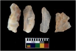 | Description / विवरण | There are n 4 utilized flake cores. There are multi directional irregular scar pattern on them. Three are tapering at one end and one has blunted edge. |