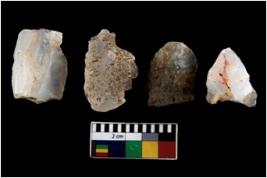 | Description / विवरण | There are n 4 ; worked utilized flakes; there are multidirectional irregular scar pattern on both dorsal and ventral face of the flakes. All are having sharp edges. |