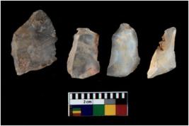 | Description / विवरण | There are n 4 utilized flake cores. There are multi directional irregular scar pattern on them. Three are tapering at one end and one has blunted edge. |
