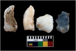 | Description / विवरण | There are n 4 ; worked utilized flakes; there are multidirectional irregular scar pattern on both dorsal and ventral face of the flakes. All are having sharp edges. |