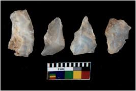| Description / विवरण | There are n 4 utilized flake cores. There are multi directional irregular scar pattern on them. All of them are tapering at one end. |