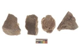 | Description / विवरण | There are n 4 utilized flakes. There are multi directional irregular scar pattern on both dorsal and ventral face of the flakes. three are sharp at one end and one has blunted edge. |