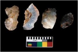 | Description / विवरण | There are n 4 ; worked utilized flakes; there are multidirectional irregular scar pattern on both dorsal and ventral face of the flakes. All are having sharp edges. |