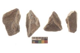 | Description / विवरण | There are n 4 utilized flakes. There are multi directional irregular scar pattern on both dorsal and ventral face of the flakes. three are tapering at one end and one has blunted edge. |