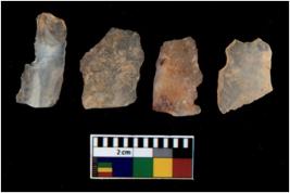 | Description / विवरण | There are n 4 utilized flake cores. There are multi directional irregular scar pattern on them. All of them are tapering at one end. |