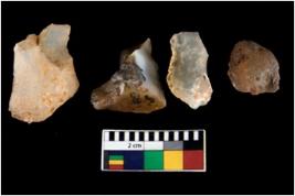 | Description / विवरण | There are n 4 ; worked utilized flakes; there are multidirectional irregular scar pattern on both dorsal and ventral face of the flakes. All are having sharp edges. |
