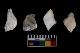 | Description / विवरण | There are n 4 flake cores. All of them are fully fluted flake cores without any trace of crested ridge flakes. Some are tapering at one end. Few have sharp edges while some have flat base. |
