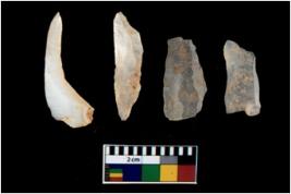 | Description / विवरण | There are n 4 utilized flake cores. There are multi directional irregular scar pattern on them. All of them are tapering at one end. |
