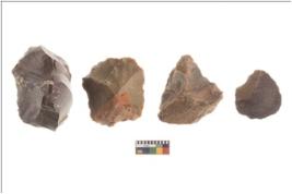 | Description / विवरण | There are n 4 utilized flake cores. There are multidirectional irregular scar pattern on both dorsal and ventral face of the flake cores. |