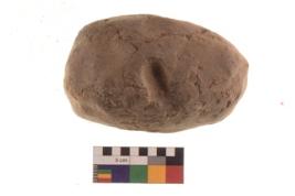| Description / विवरण | Specimen of roughly oval shaped terracotta cake. It is hand-made with well levigated clay.It is coarse and ill fired. |