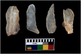 | Description / विवरण | There are n 4 utilized flake cores. There are multi directional irregular scar pattern on them. One has sharp edge and three are tapering at one end. |