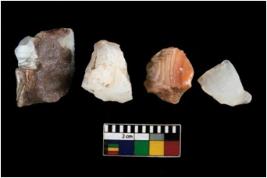 | Description / विवरण | There are n 4 ; worked utilized flakes; there are multidirectional irregular scar pattern on both dorsal and ventral face of the flakes. All are having sharp edges. |