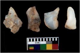 | Description / विवरण | There are n 4 utilized flake cores. There are multi directional irregular scar pattern on them. Three are tapering at one end and one has blunted edge. |