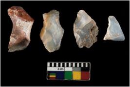 | Description / विवरण | There are n 4 ; worked utilized flakes; there are multidirectional irregular scar pattern on both dorsal and ventral face of the flakes. All are having sharp edges. |