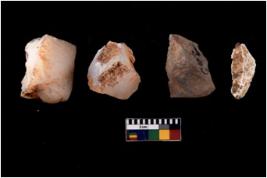 | Description / विवरण | There are n 4 cores; there are multidirectional irregular scar pattern on them. The reverse bulb and platform can be seen. |