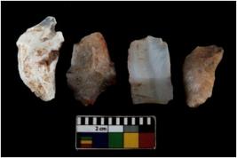 | Description / विवरण | There are n 4 ; worked utilized flakes; there are multidirectional irregular scar pattern on both dorsal and ventral face of the flakes. All are having sharp edges. |