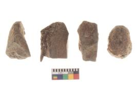 | Description / विवरण | There are n 4 utilized flakes. There are multi directional irregular scar pattern on both dorsal and ventral face of the flakes. two are tapering at one end and two have sharp edges. |