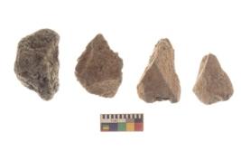 | Description / विवरण | There are n 4 utilized flakes. There are multi directional irregular scar pattern on both dorsal and ventral face of the flakes. three are tapering at one end and one has sharp edge. |