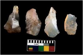 | Description / विवरण | There are n 4 ; worked utilized flakes; there are multidirectional irregular scar pattern on both dorsal and ventral face of the flakes. All are having sharp edges. |