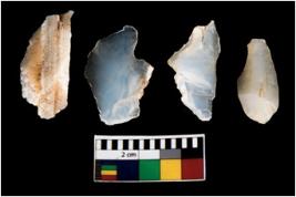 | Description / विवरण | There are n 4 ; worked utilized flakes; there are multidirectional irregular scar pattern on both dorsal and ventral face of the flakes. All are having sharp edges. |