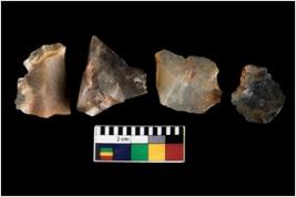| Description / विवरण | There are n 4 ; worked utilized flakes; there are multidirectional irregular scar pattern on both dorsal and ventral face of the flakes. All are having sharp edges. |