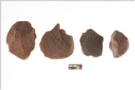 | Description / विवरण | There are n 4 utilized flake cores. There are multidirectional irregular scar pattern on both dorsal and ventral face of the flake cores. |