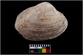 | Description / विवरण | Specimen of a large bivalve marine shell with sharp edge. Probably use as spoon. |