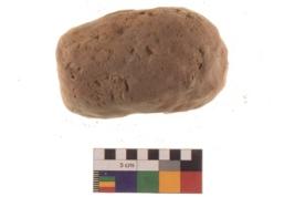 | Description / विवरण | Specimen of roughly oval shaped terracotta cake. It is hand-made with well levigated clay.It is coarse and ill fired. |