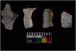 | Description / विवरण | There are n 4 flake cores. All of them are fully fluted flake cores without any trace of crested ridge flakes. Some are tapering at one end and some have sharp edges. |