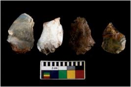 | Description / विवरण | There are n 4 ; worked utilized flakes; there are multidirectional irregular scar pattern on both dorsal and ventral face of the flakes. All are having sharp edges. |