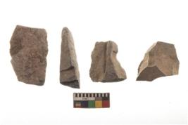 | Description / विवरण | There are n 4 utilized flakes. There are multi directional irregular scar pattern on both dorsal and ventral face of the flakes. three are tapering at one end and one has pointed edge. |