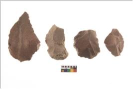 | Description / विवरण | There are n 4 utilized flake cores. There are multidirectional irregular scar pattern on both dorsal and ventral face of the flake cores. |