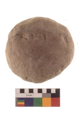 | Description / विवरण | Specimen of roughly rounded terracotta cake. It is hand-made with well-levigated clay. It is having rough surface and reddish in colour. It is coarse and ill fired. |
