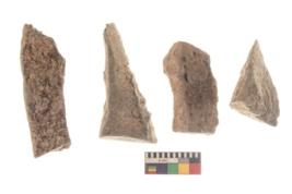 | Description / विवरण | There are n 4 utilized flakes. There are multi directional irregular scar pattern on both dorsal and ventral face of the flakes. three are tapering at one end and one has blunted edge. |