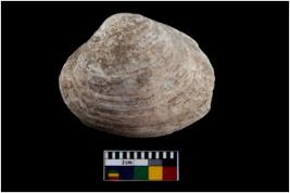 | Description / विवरण | Specimen of a large bivalve marine shell with ground edge. Probably use as spoon. |