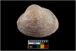 | Description / विवरण | Specimen of a large bivalve marine shell with ground edge. Probably use as spoon. |