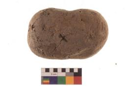 | Description / विवरण | Specimen of roughly oval shaped terracotta cake. It is hand-made with well levigated clay.It is coarse and ill fired. |
