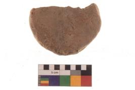 | Description / विवरण | Specimen of roughly rounded terracotta cake. It is hand-made with well-levigated clay. It is having flat base rough surface and reddish in colour. It is coarse and well fired. |
