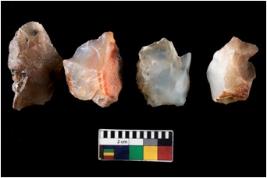| Description / विवरण | There are n 4 ; worked utilized flakes; there are multidirectional irregular scar pattern on both dorsal and ventral face of the flakes. All are having sharp edges. |