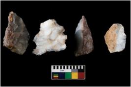| Description / विवरण | There are n 4 ; worked utilized flakes; there are multidirectional irregular scar pattern on both dorsal and ventral face of the flakes. All are having sharp edges. |