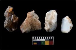 | Description / विवरण | There are n 4 ; worked utilized flakes; there are multidirectional irregular scar pattern on both dorsal and ventral face of the flakes. All are having sharp edges. |