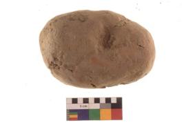 | Description / विवरण | Specimen of roughly oval shaped terracotta cake. It is hand-made with well levigated clay.It is coarse and ill fired. |