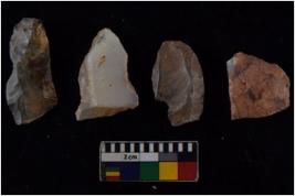 | Description / विवरण | There are n 4 flake cores. All of them are fully fluted flake cores without any trace of crested ridge flakes. Some are tapering at one end and some have sharp edges. |