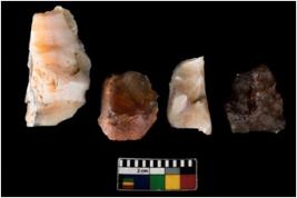 | Description / विवरण | There are n 4 ; worked utilized flakes; there are multidirectional irregular scar pattern on both dorsal and ventral face of the flakes. All are having sharp edges. |