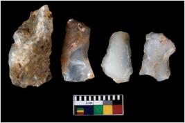 | Description / विवरण | There are n 4 ; worked utilized flakes; there are multidirectional irregular scar pattern on both dorsal and ventral face of the flakes. All are having sharp edges. |